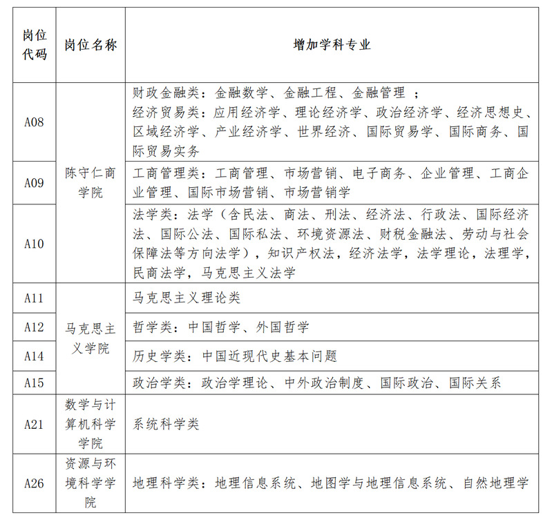 《2023年泉州388vip太阳集团公开招聘高层次人才方案》于2023年4月6日在福建省人力资源和社会保障厅网站、泉州388vip太阳集团教师工作部(人事处)网站公开发布。方案里A08、A09、A10、A11、A12、A14、A15、A21、A26岗位需求专业增补如下: