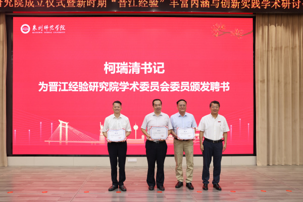活动中,与会领导共同为“晋江经验”研究院揭牌。柯瑞清颁发“晋江经验”研究院学术委员会主任、委员和“晋江经验”研究院院长聘书。